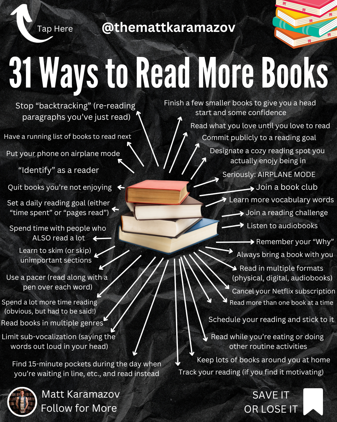 There are plenty more fantastic strategies above, and so see if you can find at least 3-4 of them that you can implement in your reading repertoire! Any single one of them could help you read at least an extra book per month.